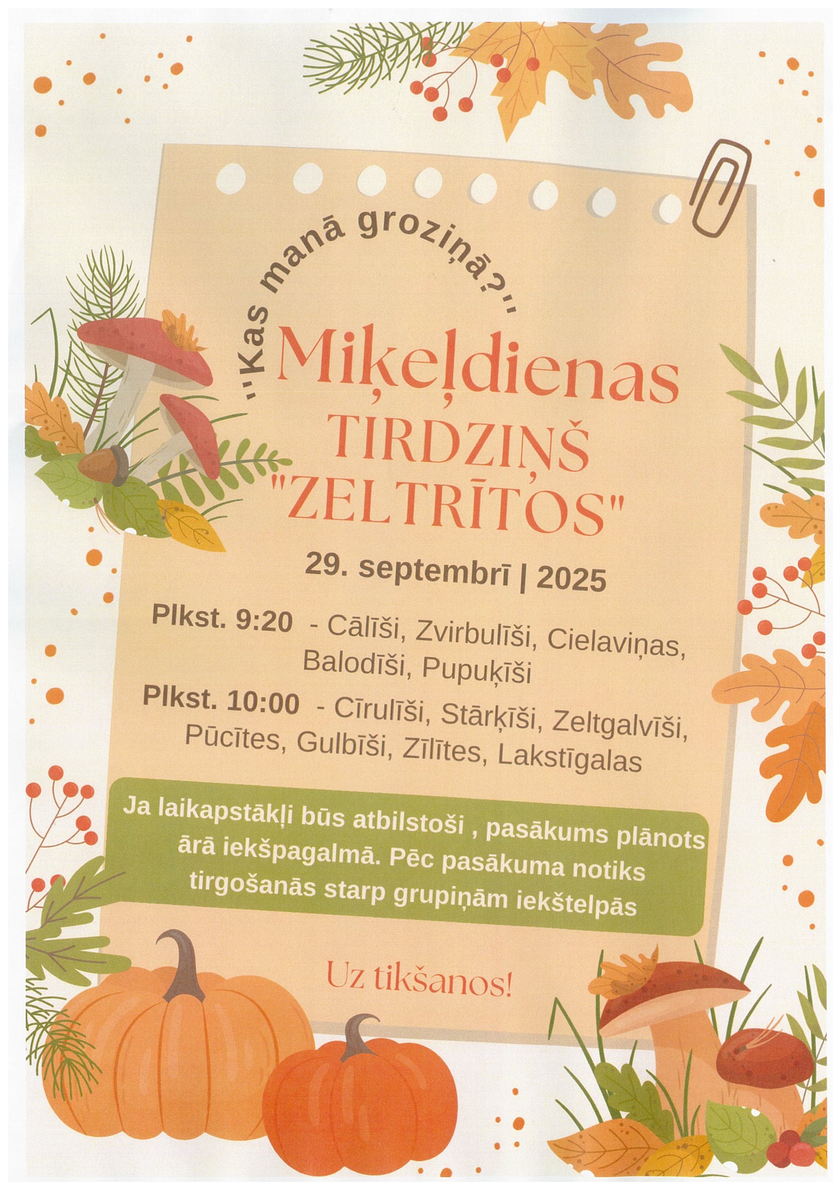 29.septembrī ieskandināsim rudens iestāšanos un pēc tam ciemosimies viena grupiņa pie otras Miķeldienas tirdziņā!