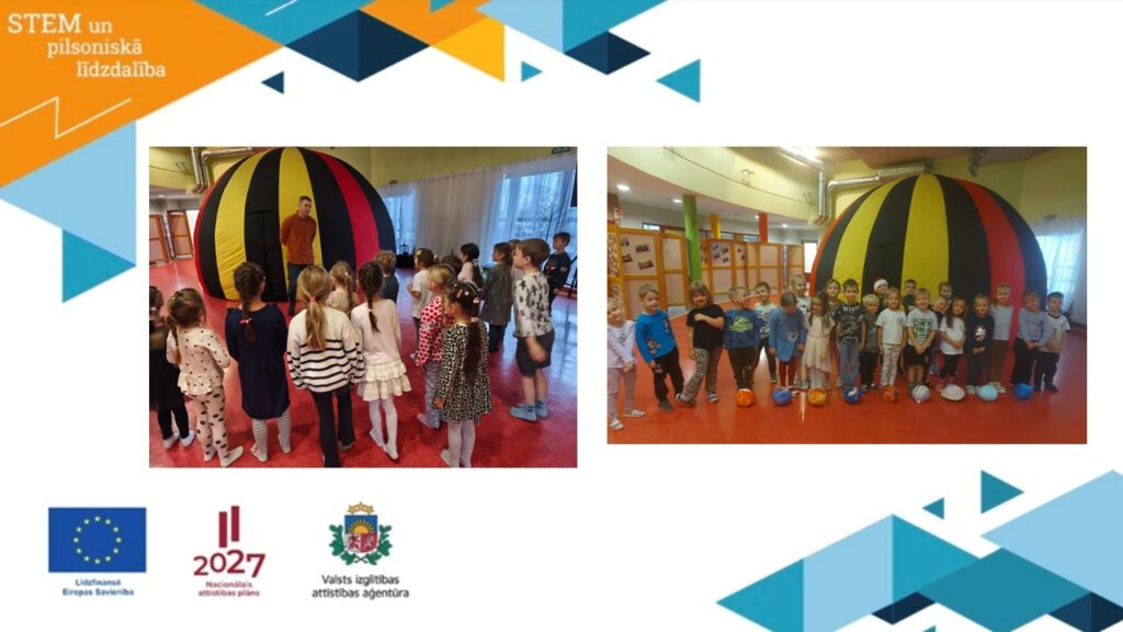 2025.gada 2.decembrī Mārupes novada PII “Zeltrīti” septiņām sagatavošanas un vecākajām grupām notika ESF+ projekta “STEM un pilsoniskās līdzdalības norises plašākai izglītības pieredzei un karjeras izvēlei” nodarbība “Digitālais ceļojums pa Saules sistēmu”, kurā bērni aizraujošā veidā apguva tēmu “Visums”. Nodarbībā tika izmantots piepūšamais digitālais kupols, kurā mazie pētnieki tika aicināti ieiet. Bērni ar lielu interesi vēroja animācijas filmu, iepazina planētas un uzzināja dažādus interesantus faktus par tām. Pēc iznākšanas no digitālā kupola bērni iesaistījās norises vadītāja sagatavotā spēlē, lai nostiprinātu iegūtās zināšanas. Bērniem patika interesantais ceļojums, kurā viņi uzzināja daudz jauna par mūsu galaktiku, un tas bija ne tikai izglītojošs, bet arī iedvesmojošs pētīt tālāk bezgalīgo debesu telpu.