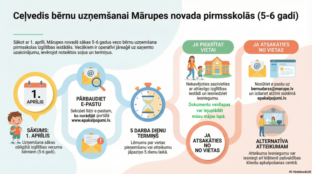 No 1. aprīļa sākas obligātā izglītības vecuma bērnu (5–6 gadi) uzņemšana Mārupes novada pašvaldības pirmsskolas izglītības iestādēs.